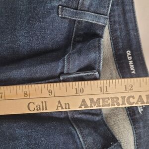 New with tags Old Navy Darkwash Midrise Rockstar Super Skinny Distressed Jeans. Women's size 16 Tall. Measurements are approximate and are shown in photos.