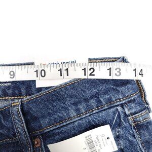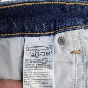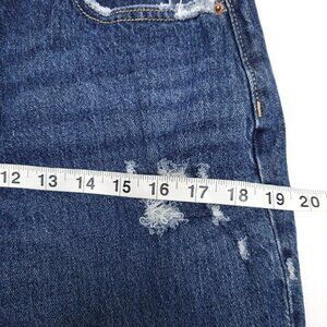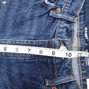Old Navy Womens Distressed Mid Rise Button Fly Jeans Size 2 Slouchy Straight Leg Blue Dark Wash Cut Off Hem