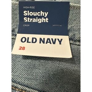 NWT Old Navy Womens High Rise Slouchy Straight Jeans 28 Cropped Distressed Denim