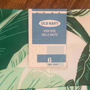 NWT Old Navy high rise, shorts, size 6, regular standard, 10 inches from crotch to waist, green and white palm pattern, very pretty (821)