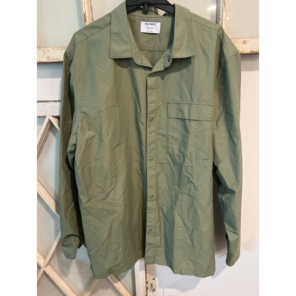 New with tags Old Navy size XXL tall green snap down top. Cotton & nylon blend. Measures 27” from armpit to armpit and 32” long.