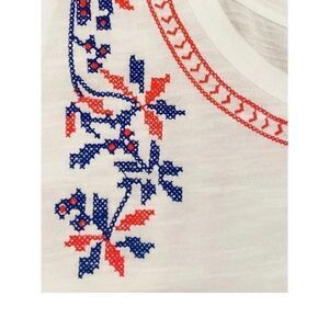 NWT Old Navy White Peplum Sleeveless Women Top with Blue and Red Embroidery