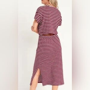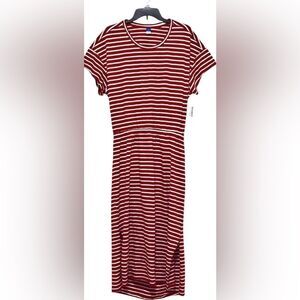 NWT Old Navy Plus Size Red Striped Waist Defined Cut Out Back Midi Dress Size 4X