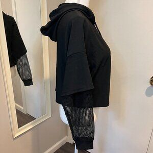 NWT Ole by Koton Black cropped hoodie sweatshirt w netted sleeves, Size Medium