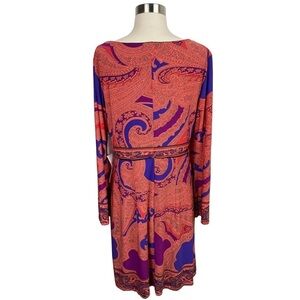 NWT Oleg Cassini L/S Multicolored Paisley Print Scoop Neck Midi Dress Size 12