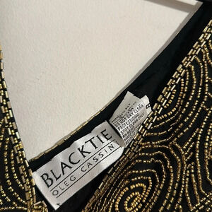 NWT Oleg Cassini black tie VINTAGE 90s silk beaded circle deadstock top blouse