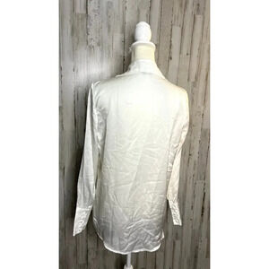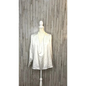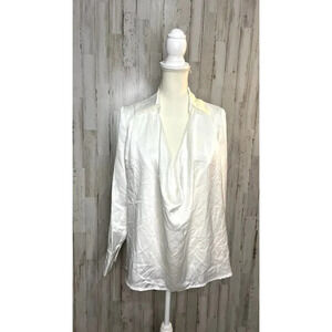 NWT Olia Women's Size Small White Satin Collared Drape Blouse