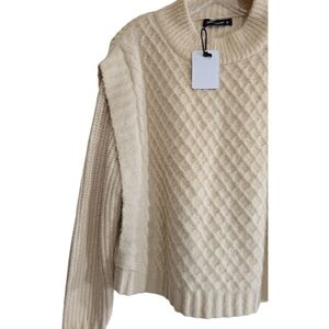 NWT Olivaceous Lattice Knit Sweater with Structured Shoulders Mock Neck Medium