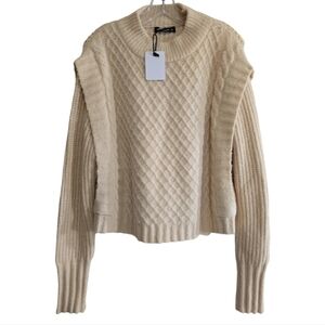 NWT Olivaceous Lattice Knit Sweater with Structured Shoulders Mock Neck