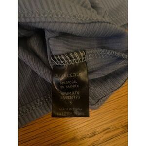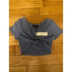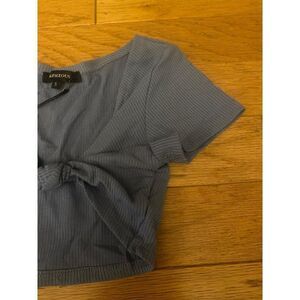 NWT Olivaceous, women's blue ribbed cropped tied front short sleeve top size sm