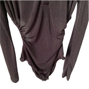 NWT Olivaceous Basic Black Long Sleeve Bodysuit Front Button with Collar Size S