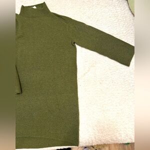 Stay cozy and stylish with this olive green sweater dress. Perfect for any occasion.