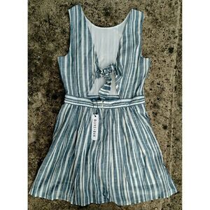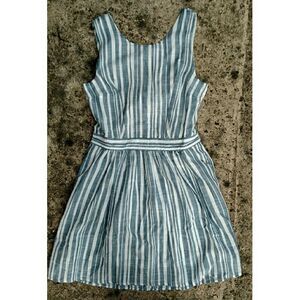 NWT chambray stripe dress. Cute open back that ties in a bow. Size large. Length 36", Armpit to Armpit 20", waist 31"