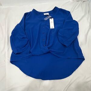 NWT Olive & Oak blue True royal roll sleeves blouse size medium