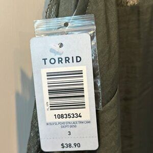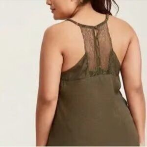 NWT Torrid Olive Green Satin Lace Cami Racerback Tank, Size 3