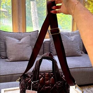 NWT Never used, perfect condition Maxed Out Mini Duffle in Rich Mocha Metallic which is a chocolately brown with a sheen.