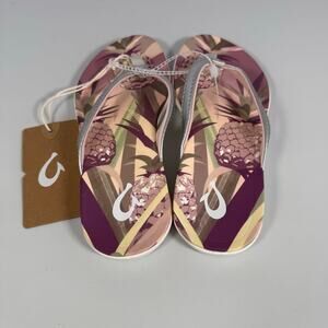 NWT OluKai Ho'opio Hau Beach Sandals Slip-on Silver/Pineapple Women Size 5