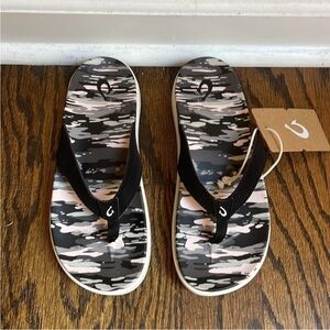 NWT OluKai NU’A PI’O Camo Black Flip Flops Women’s 6