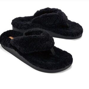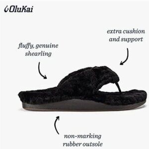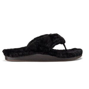 NWT OluKai Women's 11 OluKai Kipe'a Heu Flip Flop Slippers Sandals Black Fuzzy