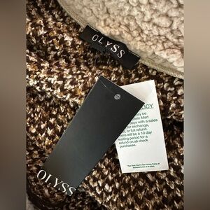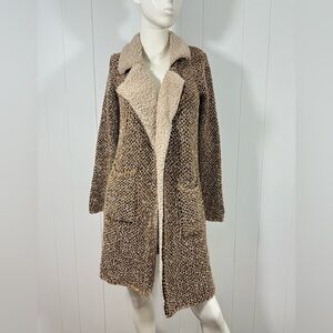 NWT Olyss Sz M Waffle Knit Long Cardigan Sweater Sherpa Neckline Open Front