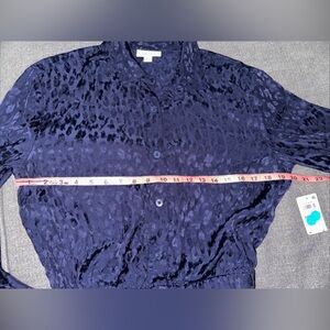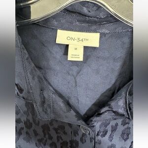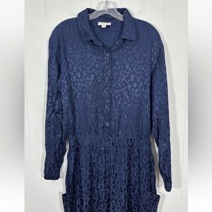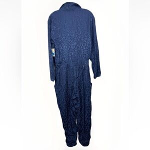 NWT On 34th Animal Print Jacquard Jumpsuit Blue Size M Long Sleeve Button Front