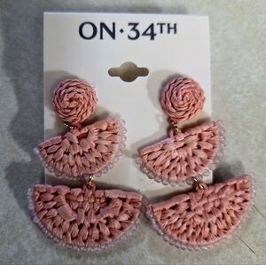 NWT On 34th Woven Raffia And Seed Bead Dangle Earrings