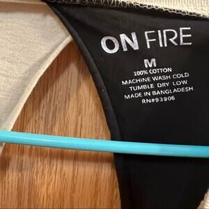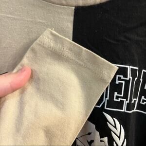 NWT On Fire Los Angeles West Coast Open Back Cropped Tee Shirt in women’s Size Medium. Long sleeves. Two tone, vertical Colorblock. NEW with tags. Pit to pit measures approx 17.25 in across and length from top of front shoulder to bottom hem measures approx 21.5 in. Please see close-up pictures for condition details.