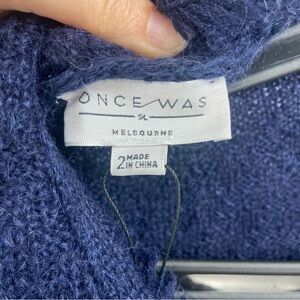 NWT Once Was Melbourne Australia Blue Mohair Wool Blend V-Neck Sweater Size Small