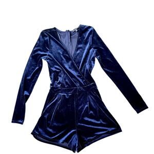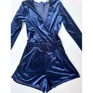 NWT One Clothing Navy Blue Velour Long Sleeve Romper Women's XS