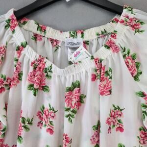 NWT One More Thyme Pink Roses White Blouse Women's Plus 3X Flared Sleeve Peasant