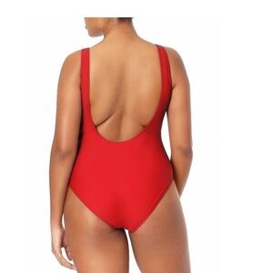NWT One Piece Back Out RED Basic Round Neck Swimwear Large 11…