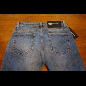 New with tags. CLASSIC BLUE FREEBIRDS II LOW WAIST SKINNY JEANS are a low-waist, skinny fit stretch jean. Slightly cropped length. Classic 5 pocket details but with our unclassic One Teaspoon touches. Our bower bird embossed metal shank button. Our personalised back patches. Our outerseams which ever so slightly veer forward to flatter your legs. It's all in the details. This is our everyday classic non classic stretch jeans.