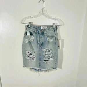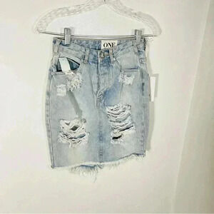 NWT One Teaspoon Wilde 2020 Denim Pencil Skirt in Wilde Wash Distressed Mini