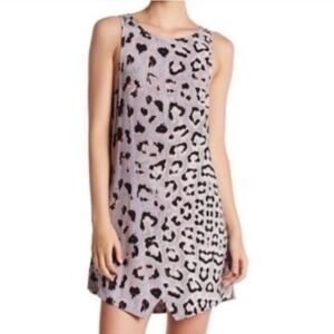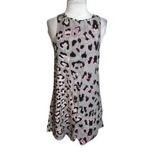 Leopard print details this sleeveless shift dress. - Scoop neck