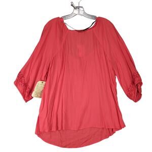 NWT One World Coral Peasant Blouse Top Women's Plus Size 2X Rhinestone Puff Slv