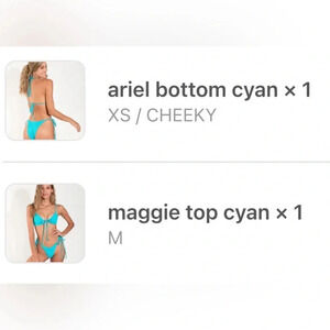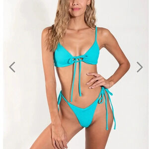 NWT OneOne Swimwear Bikini SET Cyan Blue Maggie Ariel Cheeky Medium Small NEW