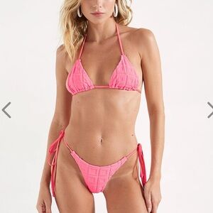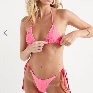 NWT OneOne Swimwear Bikini SET Flamingo Pink Ariel Triangle NEW Cute Terry Towel