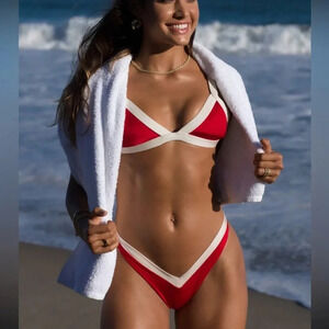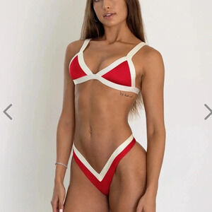 NWT OneOne Swimwear Bikini Set London Red White Small New Jesse Kameron 2024