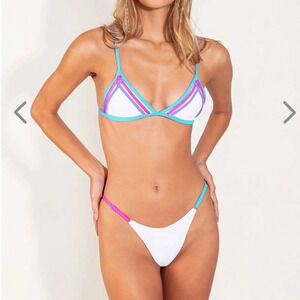 NWT OneOne Swimwear Bikini Set Pristine Hailey Alli Skimpy NEW White Small Blue