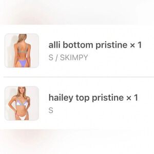 - bottoms are Alli style, adjustable on sides, skimpy, size small