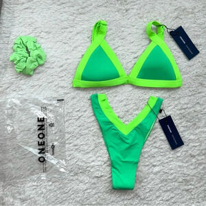 NWT OneOne Swimwear Bikini Set Vienna Green Small New Jesse Kameron Neon Rare