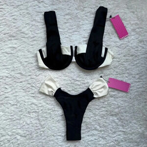 NWT OneOne Swimwear SET Bikini Black White Cape Amanda Cecilia New Swimsuit