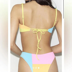 NWT OneOne Swimwear SET Bikini Cockatoo Anastasia Lourdes Colorblock Yellow Pink