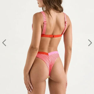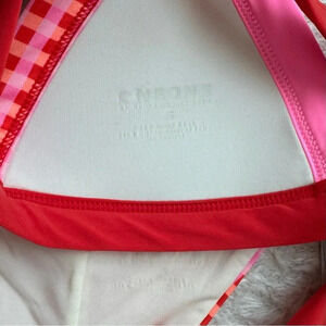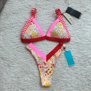 NWT OneOne Swimwear SET Bikini Floral Checks Red Cute NEW Jesse Kameron Small