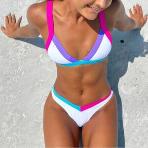 NWT OneOne Swimwear SET Bikini Pristine Kameron Jesse White Purple Pink NEW Cute