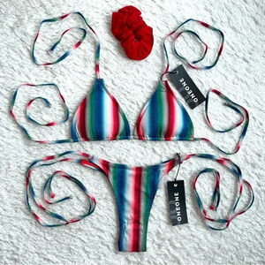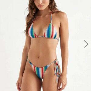 NWT OneOne Swimwear Zermatt Bikini SET New Green Blue Red Stripe Ariel Skimpy
