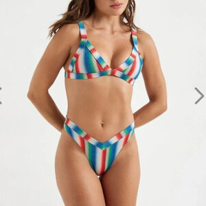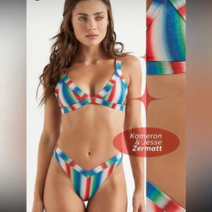 NWT OneOne Swimwear Zermatt Bikini SET New Small Jesse Kameron Green Blue Red