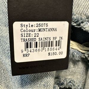NWT One Teaspoon Women’s Trashed Saints Boyfriend Jeans Distressing Size 22/00