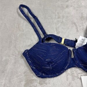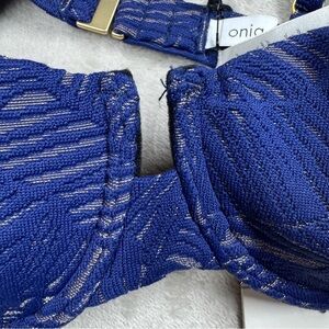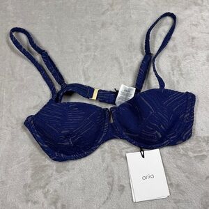 NWT Onia Dalia Palm Jaquard Navy Blue Metallic Bikini Swim Underwire Top