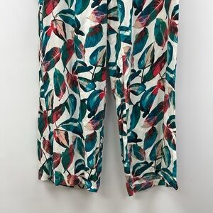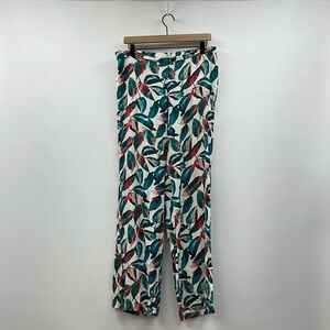 NWT Onia Mila Tropical Leaf Print High Rise Wide Leg Pants Boho Beach Teal Large